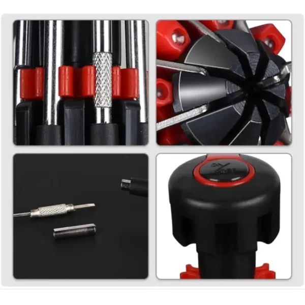 Este kit de herramientas de reparación de alta calidad combina versatilidad y funcionalidad en un diseño compacto y ligero, perfecto para cualquier hogar o taller. Con un destornillador magnético de alta resistencia y una linterna LED integrada, este producto está diseñado para mejorar la eficiencia en cualquier tarea de reparación.